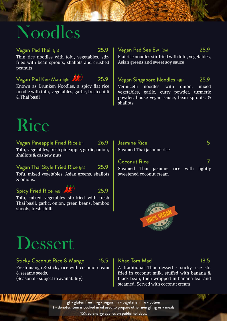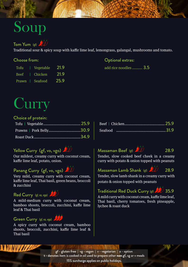 Our menu takes you on a culinary adventure, featuring highlights like the exquisite Penang Curry and traditional Red Duck Curry, both of which delight the senses. Vegetarians will find solace in a robust vegan selection, ensuring everyone is catered for. Notably, the option to customize spice levels adds an interactive element to your meal.